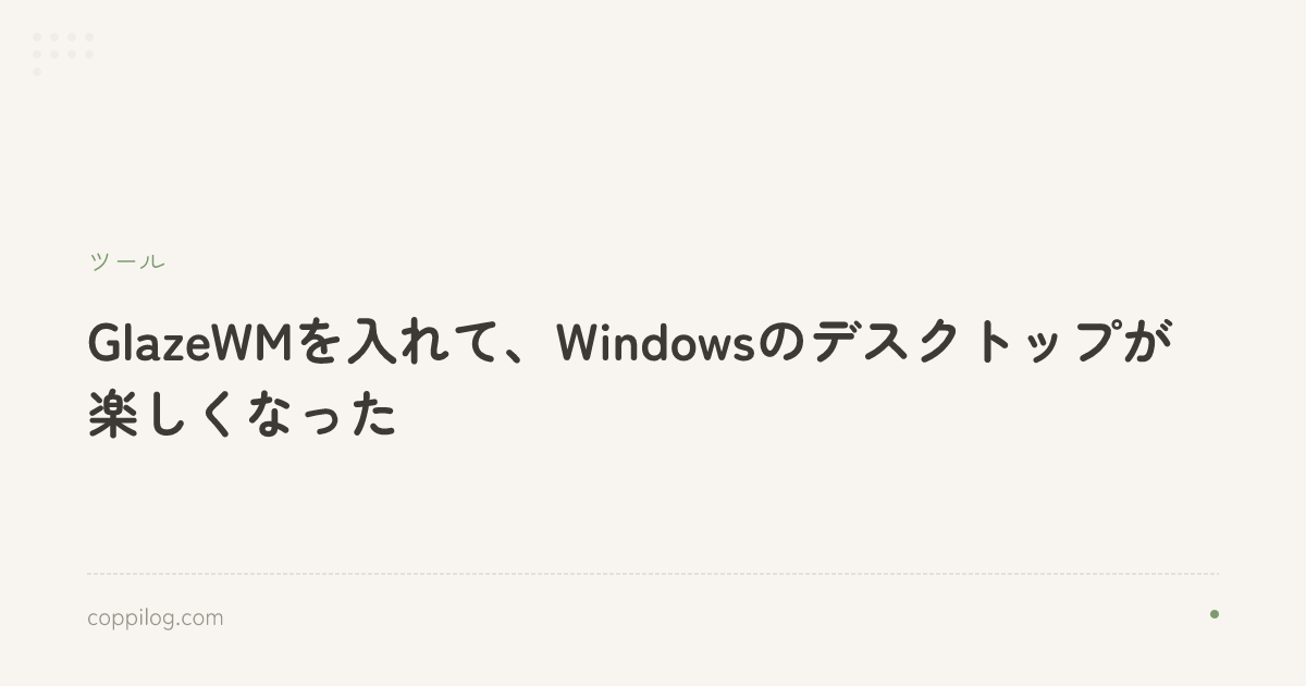 ファイラー探しをきっかけにGlazeWMというタイリングウィンドウマネージャーを知りました。学生時代のRainmeterやfoobar2000以来、久しぶりにWindowsのカスタマイズにハマっています。
