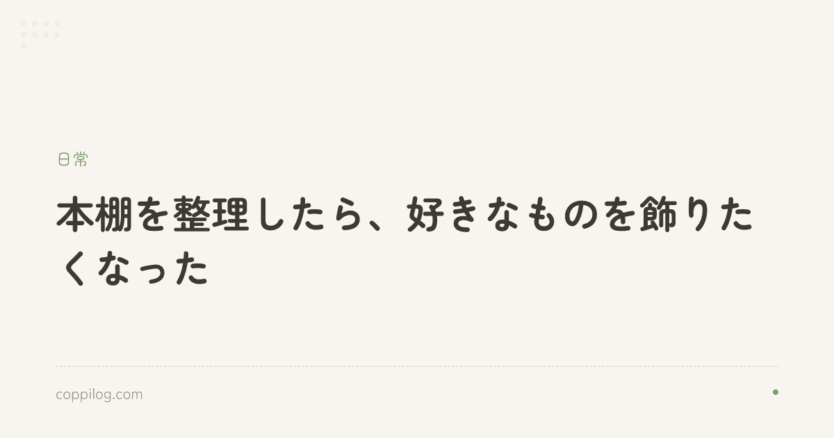 仕事が落ち着いたタイミングで本棚を整理しました。残す基準は「今の自分がわくわくするかどうか」。片付けた先に見えてきたのは、好きなものを飾るスペースでした。