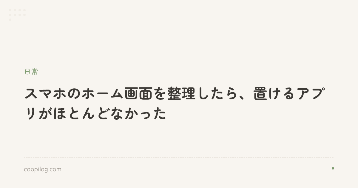PCのターミナル環境を整えていたら、スマホに手が伸びなくなりました。CALM YOUR MINDを読み直しながらホーム画面を整理してみたら、1ページ目に残せるアプリがほとんどなくて驚いた話です。
