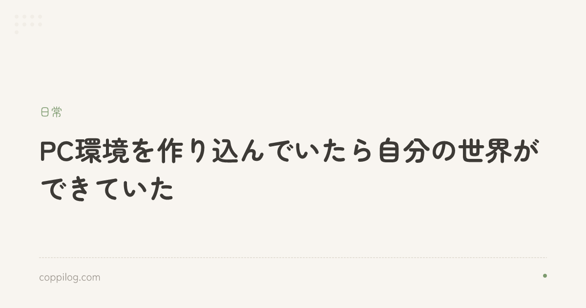 デスクトップ、ターミナル、Obsidian、ブログ。ここ数週間で触ってきたことを振り返ったら、全部「自分の世界を自分で作る」という一本の線でつながっていました。